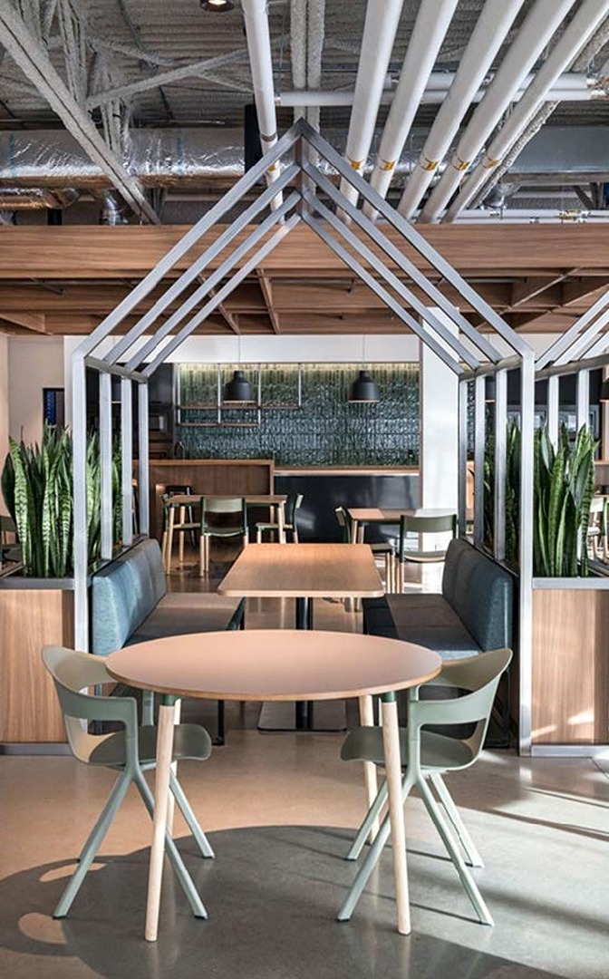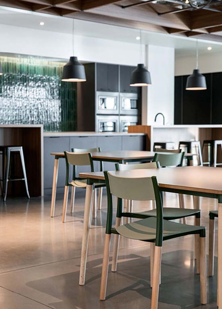 Prior to re-developing their new Canadian headquarters, The Rosen Group had grown into separate but adjacent locations, and their collaborative culture could not thrive with the disconnection these buildings created. Rosen assembled a team of real-estate, architecture, design, and construction professionals to assist them. MH Design Group were engaged to work closely with MAKE on the furniture specification and Allermuir products were selected throughout. Connection, growth, and innovation were the driving concepts for the new space, a former warehouse and manufacturing facility.